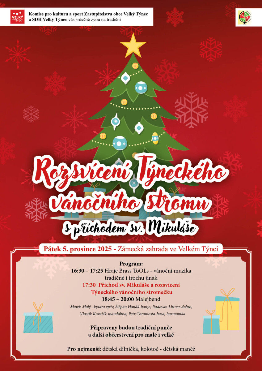 Týnecký vánoční strom tradičně rozsvítí svatý Mikuláš s družinou.