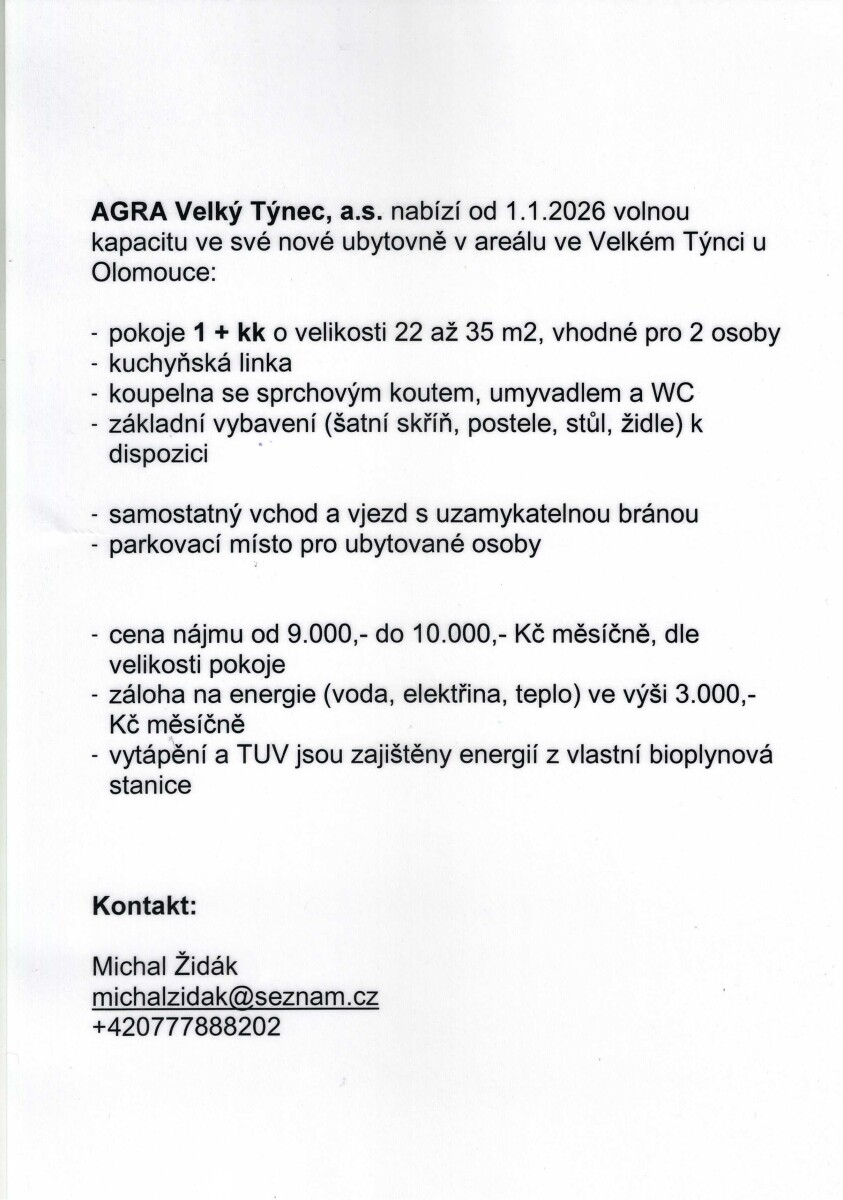 Nabídka ubytování - AGRA Velký Týnec, a.s.