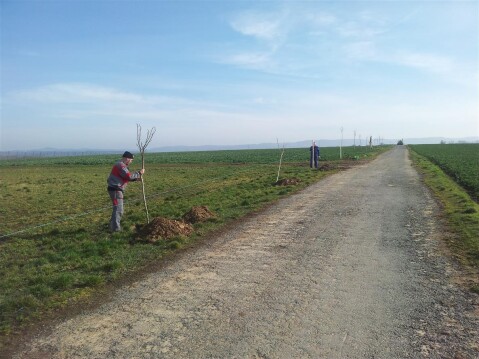 Při polní cestě na Čechovice firma Zdeňky a Ladislava Kuchařových z Velkého Týnce vysazuje první část nového stromořadí. To je zakončeno u sochy sv. Marka. Pokračovat směrem na Čechovice budeme po vyřízení souhlasu majitelů pozemků. První část výsadby pro -