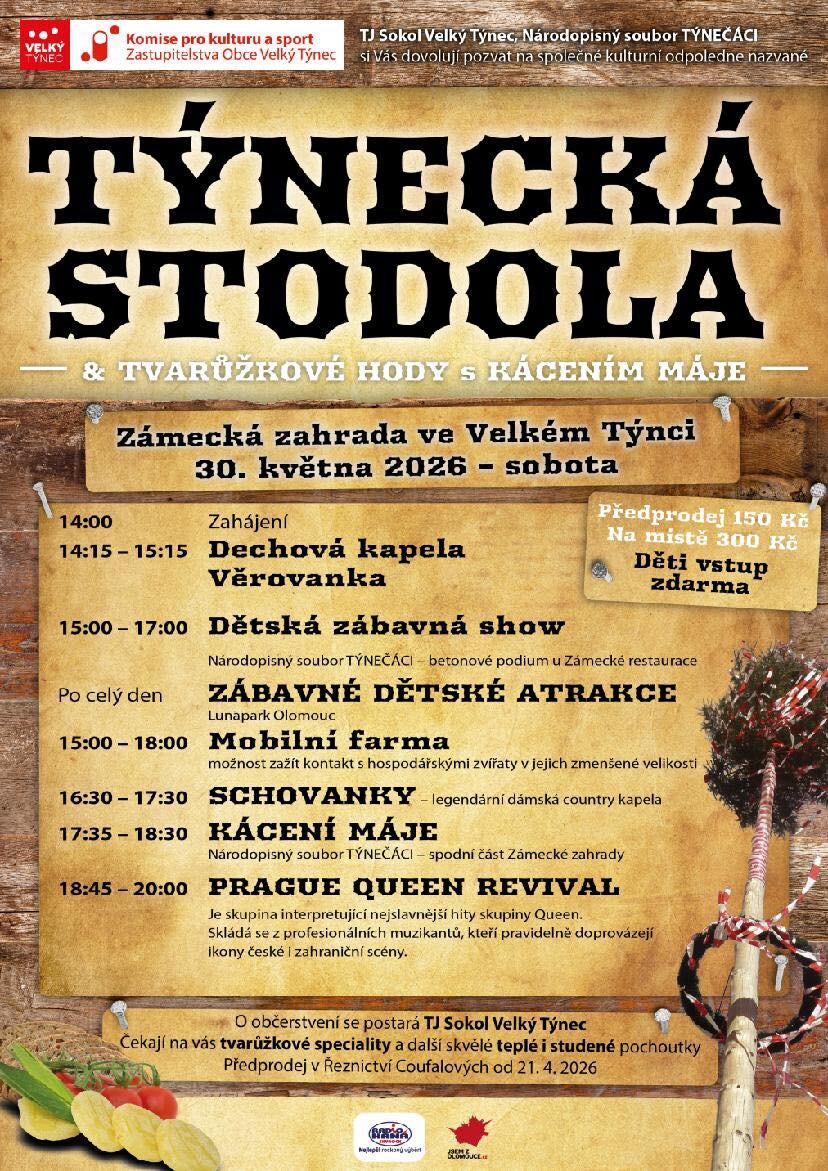 Týnecká stodola - tvarůžkové slavnosti, kácení máje, dětský den