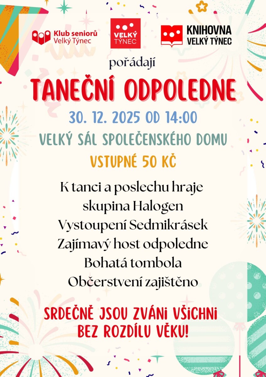 30.12.2025 - Taneční odpoledne - od 14:00 hodin, Společenský dům